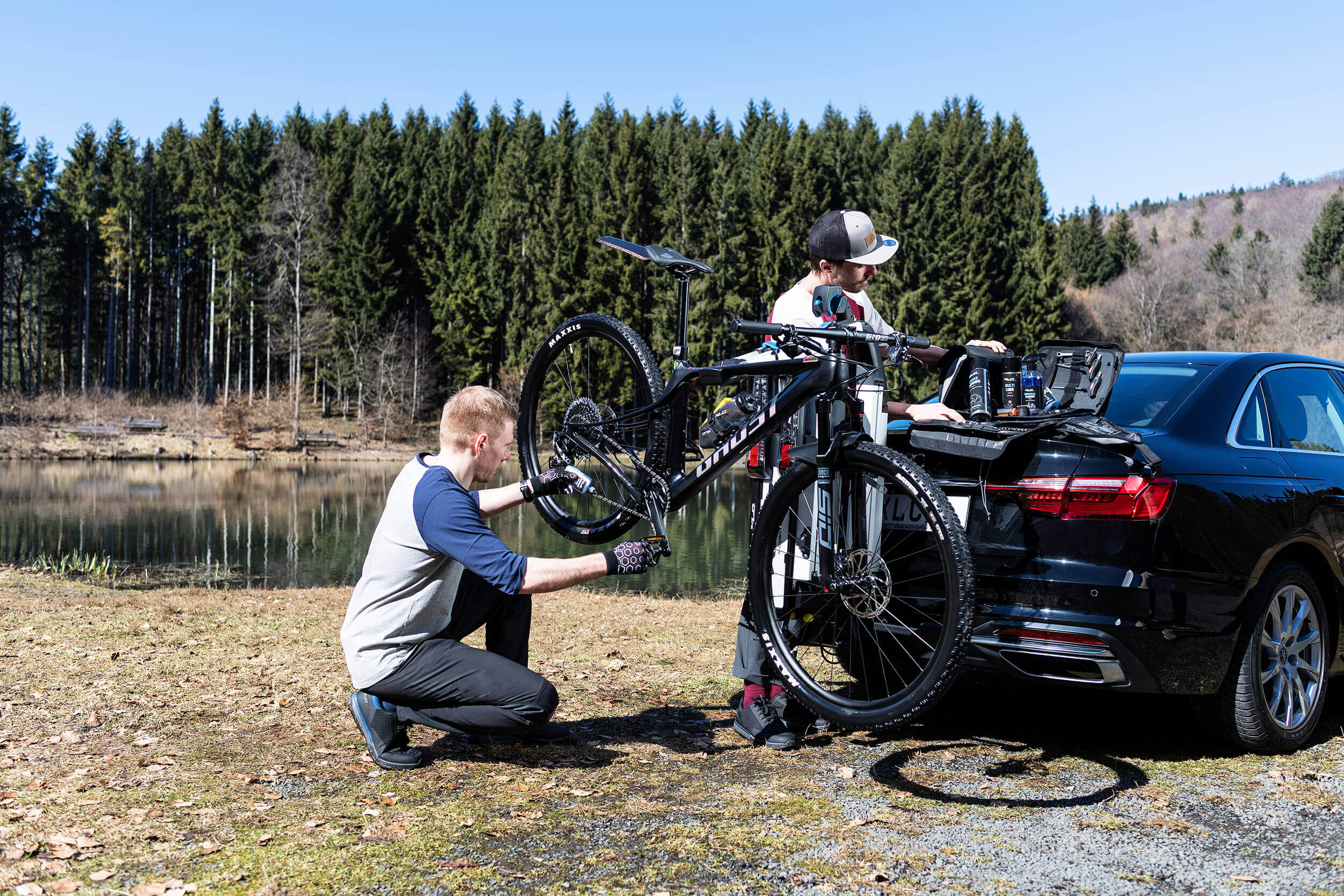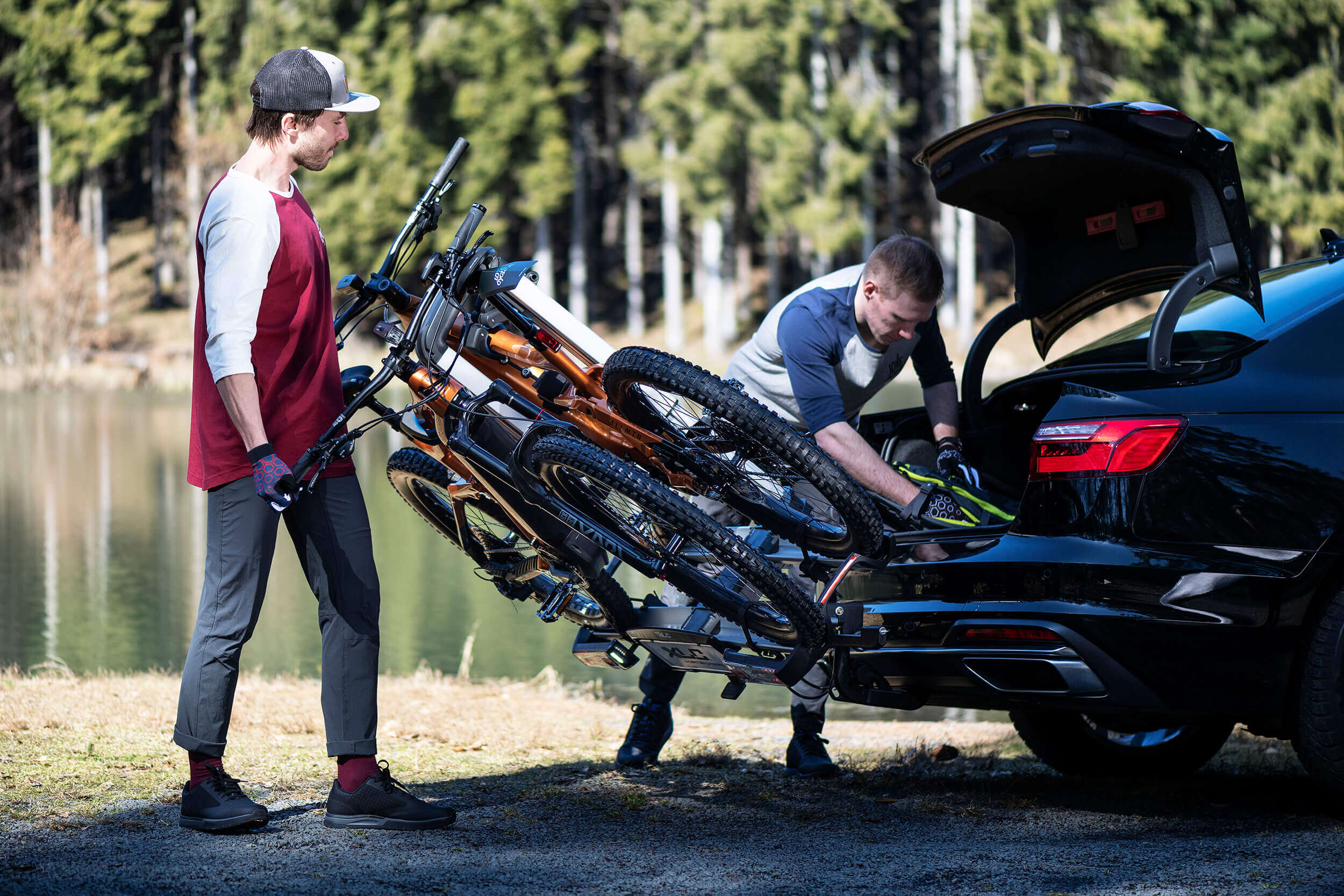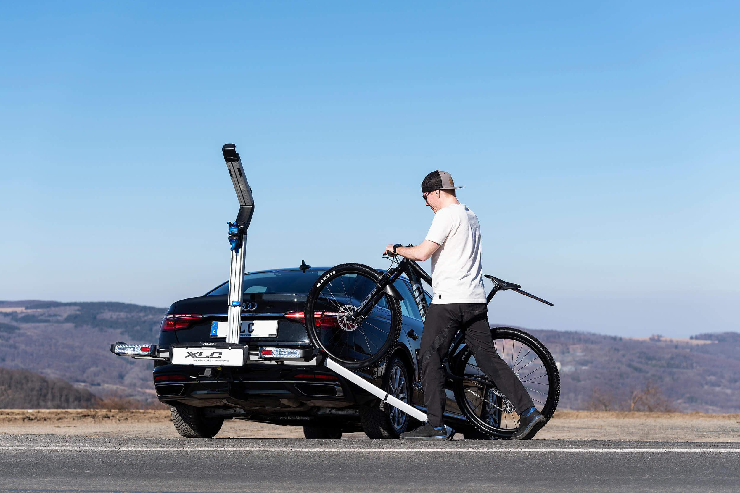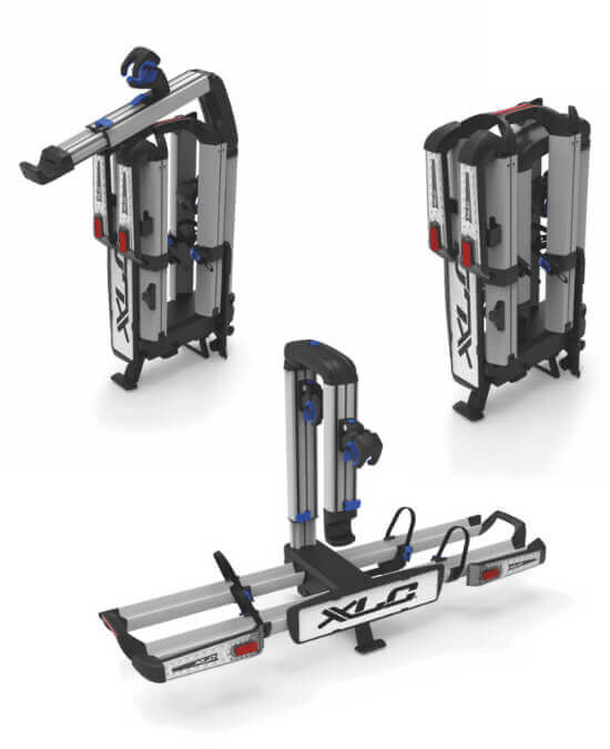 It’s finally here: the new XLC Bike Rack Almada Work-E. A sophisticated foldable, bike carrier, which catches the eye thanks to its unique and robust design and LED lighting. The wide wheel rails are designed for even the largest E-MTBs so that two different sized bikes can easily be transported. The Almada Work-E offers the possibility to use the carrier as a simple work stand for easy bike maintenance and repair. The new bike grippers are suitable for every frame material, even for full suspension carbon frames. Thanks to the Modular Rail System (MRS), various accessories, such as an extra XLC MRS Rail Lock, can be installed for a higher safety. A loading ramp as well as a frame adapter is available separately: in this way, low-entry bikes can also benefit from the Almada Work-E’s innovative features.